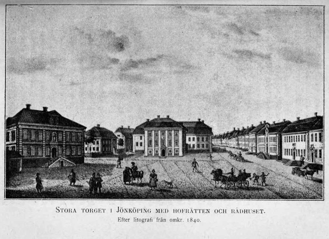Stora Torget i Jönköping avbildat 1840, då Rydberg var 12 år gammal.